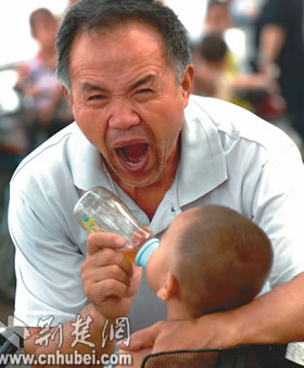 在鄒醫(yī)生的診所里,坐著一個(gè)打點(diǎn)滴的病人!岸际峭k姾Φ!這么熱,我哪躺得下!”他苦笑著。鄒醫(yī)生不時(shí)站起來(lái),為幾個(gè)病人換頭上的濕毛巾。