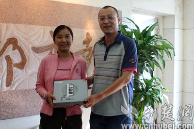 四時整,楚天都市報副總編輯費力和荊楚網(wǎng)副總編輯張劍分別為兩位中獎?wù)哳C發(fā)了獎品,并希望他們繼續(xù)關(guān)注這次活動,能再次成為最后大獎的幸運讀者。