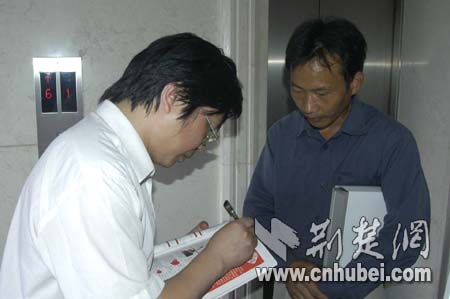 荊楚網(wǎng)副總編輯黃斌應(yīng)潛江萬先生之請簽名留戀,萬先生表示要將這份紀念帶回去