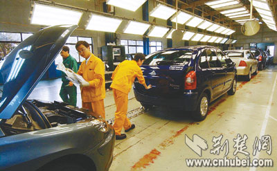 繁忙的神龍汽車生產(chǎn)線。日報記者楊平攝