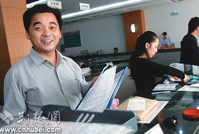 7日,武漢雷泰電力材料有限公司的張紅軍(上圖),僅用20分鐘就在武漢市洪山區(qū)政務(wù)服務(wù)中心辦理完公司的稅務(wù)登記證。他滿(mǎn)臉笑容地說(shuō):“現(xiàn)在辦事方便了,態(tài)度也好了!倍荒昵,辦理同樣一份登記證至少要跑4個(gè)部門(mén),有時(shí)花一星期時(shí)間也不一定能辦妥。
