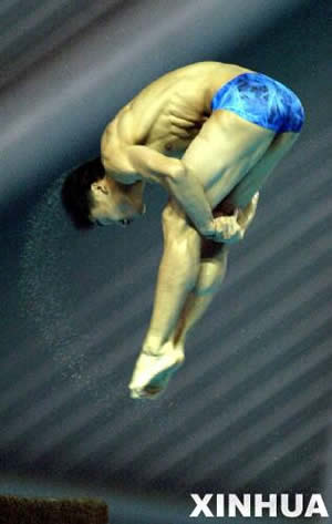 9月28日,陜西隊選手田亮在男團(tuán)十米跳臺的比賽中。最終,他以275.25分的成績獲得該項目第一名。當(dāng)日,在南京進(jìn)行的第十屆全國運動會跳水男子團(tuán)體比賽中,陜西隊以2155.25分的總成績獲得銅牌。(新華社記者孟永民攝)