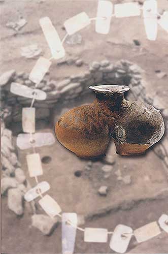 大理石和粘土巖制項飾:裝飾品(背景右,長52厘米)[相關鏈接]:20世紀中國百項考古大發(fā)現(xiàn)(1-20)21、大溪遺址(圖)22、城頭山遺址(圖)23、屈家?guī)X遺址(圖)24、崧澤遺址(圖)25、馬家窯遺址(圖)26、柳灣墓地(圖)27、牛河梁遺址(圖)28、城子崖遺址(圖)29、良渚文化遺址群(圖)30、石家河遺址群(圖)31、陶寺遺址(圖) 32、王城崗遺址(圖)33、齊家坪遺址(圖)34、卡若遺址(圖)35、石峽遺址(圖) 36、東灣仔北遺址(圖)37、圓山遺址(圖)38、二里頭遺址(圖)39、東下馮遺址(圖)40、夏家店遺址(圖)
