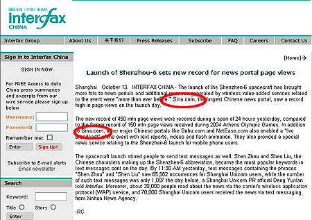 俄媒體稱神六使中國(guó)新聞門戶網(wǎng)頁(yè)面流量創(chuàng)新高