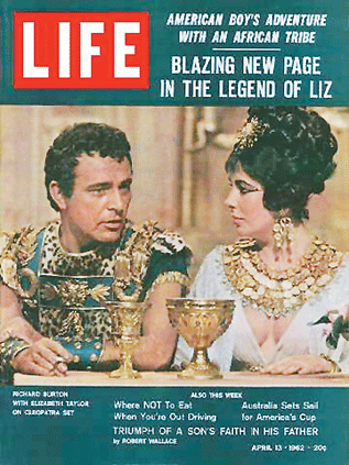 1961年,泰勒入主《埃及艷后》,20世紀(jì)?怂归_給她的報(bào)酬是當(dāng)時(shí)破紀(jì)錄的100萬美元。而她的羅曼史翻開了新的一頁——與扮演羅馬大將安東尼的理查德·伯頓陷入熱戀。