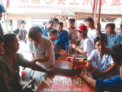 15日,參加武鋼工程建設(shè)的百余位農(nóng)民工兄弟,樂呵呵地接受了中國一冶電裝公司武鋼項目部為他們免費(fèi)進(jìn)行的體檢。浠水工程隊民工朱宗杰說:“這兩年來,社會各界對農(nóng)民工的關(guān)心很實(shí)在!