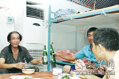 荊楚網(wǎng)(楚天都市報(bào))昨日下午,新洲來(lái)漢的農(nóng)民工程師傅一收工,就直接鉆進(jìn)了集體宿舍,圖個(gè)涼快———宿舍里剛剛安裝了一臺(tái)5匹的大空調(diào)。程師傅是一位木工,他所在的工地是位于漢口建一路的麗水康城。在那里,和他一起的工友有600多人,全都住在裝有空調(diào)的宿舍里。