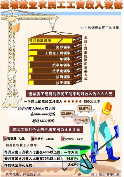進城就業(yè)農(nóng)民工工資收入較低(圖)
