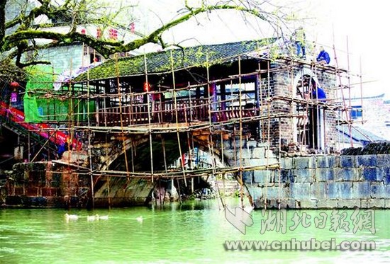 湖北日?qǐng)?bào)訊 21日,工人們正在對(duì)咸寧市咸安區(qū)劉家橋古建筑風(fēng)雨橋進(jìn)行修繕。劉家橋古民居群始建于明成化9年,建筑群總面積達(dá)3.5萬平方米,被譽(yù)為“楚天民俗第一村”。修繕工程工期6個(gè)月,采用傳統(tǒng)工藝進(jìn)行修復(fù),以求最大程度地恢復(fù)古民居原貌。