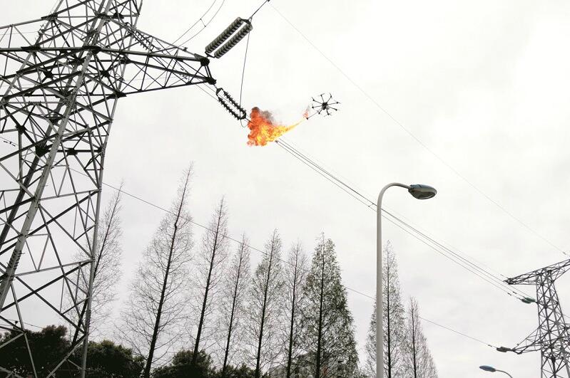 據(jù)現(xiàn)場(chǎng)的電力工人介紹,檢修高壓線并不難,難就難在要經(jīng)常性地清理雜物。高壓線上往往附著大量的垃圾袋、地膜、孔明燈等,清除是一個(gè)頭疼的問題。使用無人機(jī)可以輕松清除雜物。作業(yè)時(shí),通過圖像測(cè)出高壓線的相對(duì)位置,再對(duì)線上的附著物噴火,這樣就可以清理掉異物。 楚天都市報(bào)記者周鵬 通訊員江博黃江林?jǐn)z影報(bào)道