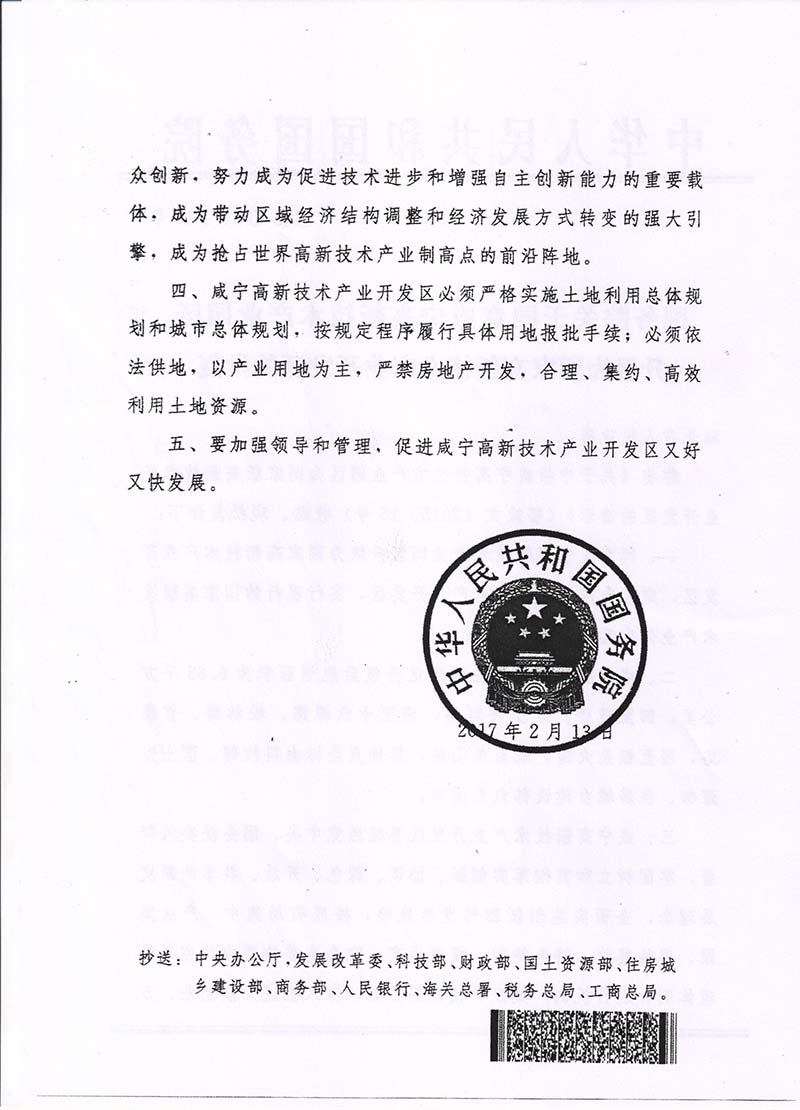 一、同意咸寧高新技術(shù)產(chǎn)業(yè)園區(qū)升級為國家高新技術(shù)產(chǎn)業(yè)開發(fā)區(qū),定名為咸寧高新技術(shù)產(chǎn)業(yè)開發(fā)區(qū),實(shí)行現(xiàn)行的國家高新技術(shù)產(chǎn)業(yè)開發(fā)區(qū)的政策。