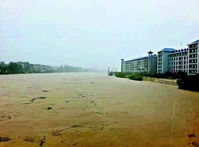 圖為:雋水河崇陽縣城段河水陡漲