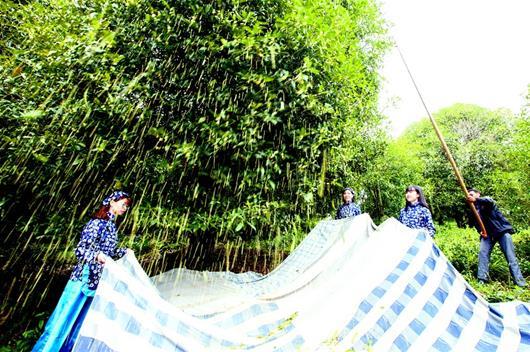 圖為:昨日,村民在一棵百年古桂樹下打桂花。當(dāng)天,“中國(guó)香谷桂花小鎮(zhèn)”桂花旅游節(jié)在咸寧市咸安區(qū)桂花源景區(qū)開幕。桂花源風(fēng)景區(qū)是全國(guó)最大的古桂群基地,樹齡50年到100年的桂樹達(dá) 2000余株,百年以上古桂樹有200余株。游客們穿行在馨香四溢的桂樹林里,一邊欣賞美景,一邊體驗(yàn)打桂花的樂趣。