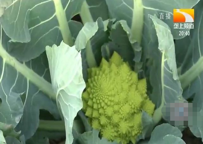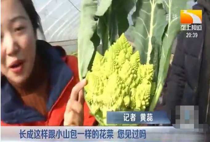 花球綠黃色,圓錐形似寶塔,上百個(gè)小花球還密密麻麻的跟螺旋一樣排列。記者黃蕊問到,這花菜長得稀奇古怪的,倒是頭一回見啊。