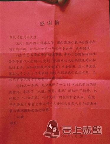 “尊敬的張向溫先生,您寄來的3000元捐款我們已經收到,在此,平邑縣紅十字會全體工作人員并代表受助人員向您表示衷心地感謝和崇高的敬意……”這是山東省平邑縣紅十字會于2016年給張向溫寄的感謝信中的一段話。