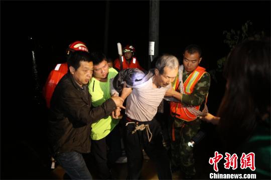 在黃沙鎮(zhèn)萬(wàn)家鄉(xiāng)上泥湖村,被困村民大多是老人。救援人員攜帶救生圈、大繩、救生衣到達(dá)受災(zāi)房屋,發(fā)現(xiàn)現(xiàn)場(chǎng)水深已達(dá)3米至4米,且水下環(huán)境復(fù)雜,積水深處水深達(dá)5米左右。面對(duì)狂風(fēng)暴雨,消防官兵挨家挨戶(hù)搜救,將被困人員逐個(gè)轉(zhuǎn)移至安全地帶。