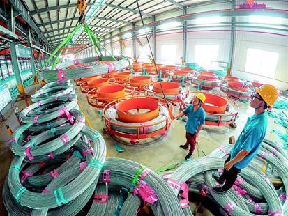 8月10日,在嘉魚經(jīng)濟(jì)開發(fā)區(qū)官橋工業(yè)園內(nèi),湖北歐維姆纜索制品有限公司員工在制造最后一批武漢楊泗港長(zhǎng)江大橋的主纜索股。楊泗港長(zhǎng)江大橋懸索橋跨度在國(guó)內(nèi)排名第一、世界排名第二。每條主纜由271根索股組成,每根索股長(zhǎng)度為2836米、重量約62噸,每根索股由91根鋼絲組成,其鋼絲直徑更大、強(qiáng)度更高,在國(guó)內(nèi)屬首次應(yīng)用。(湖北日?qǐng)?bào)全媒記者 陳勇通訊員謝燕子攝)