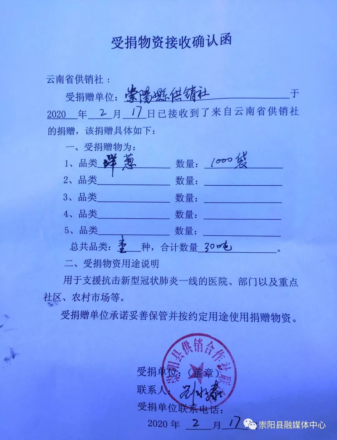 2月17日上午,由云南省供銷社對(duì)口支援一線抗疫的蔬菜物資、價(jià)值30萬元的洋蔥運(yùn)抵崇陽。