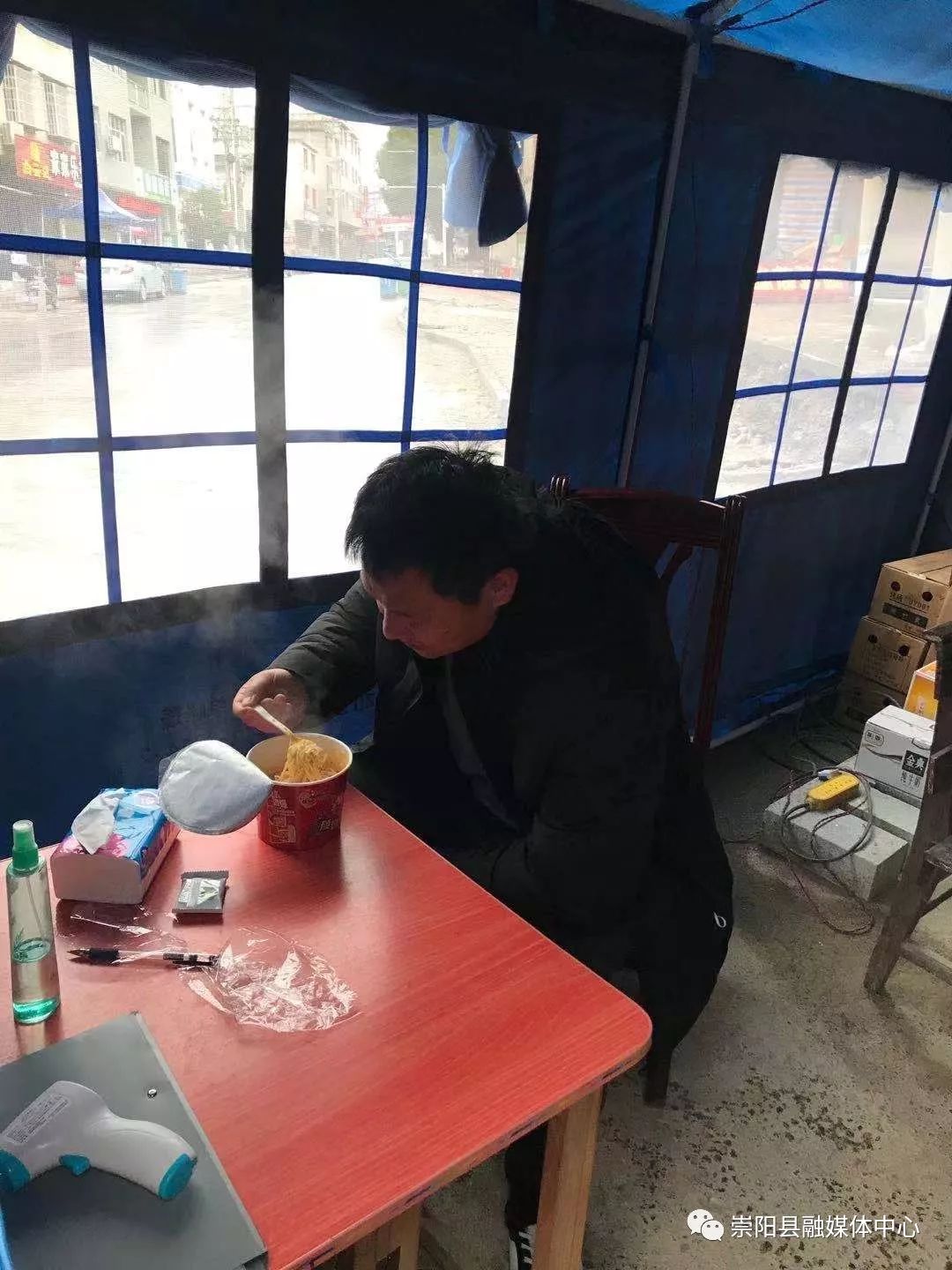 次日中午,他們到達(dá)340公里外的河南省信陽市交接捐贈物資,拖運過程中,顧不上連續(xù)作戰(zhàn)的疲勞,石強(qiáng)二話不說又當(dāng)起了搬運工,和同事們一起將3000壺酒精搬上了貨車。晚上6時57分,貨車安全抵達(dá)崇陽縣城,顧不上休息,他又開始轉(zhuǎn)運酒精入庫。