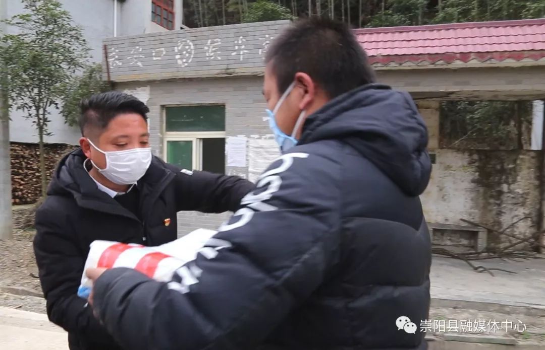 雙港村所處地理位置特殊,南面臨近石城鎮(zhèn),西面臨近赤壁市羊樓洞,守好卡點(diǎn)、阻斷人員流通是該村疫情防控的重中之重。每天天剛亮,陳和水就要開始一天的巡防工作,看著父親日夜操勞,兒子雷文主動“請戰(zhàn)”,幫助值守卡點(diǎn)、入戶宣傳防控知識,成為一名光榮的志愿者。