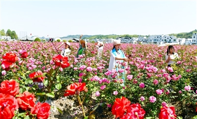 通城縣麥市鎮(zhèn)冷段村引進資金,在200余畝荒地上種植月季花。20多個品種的月季正值盛花期,每天吸引眾多游客游玩賞花,當?shù)匕才?0多位農(nóng)民配套服務,在家門口增收。