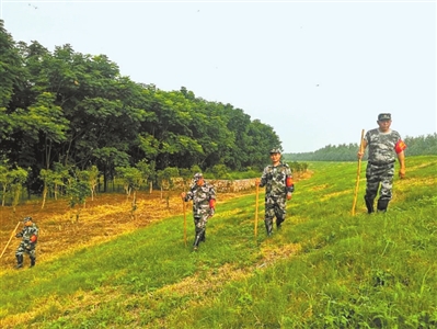 “這個插上紅旗做標(biāo)志的地方是地質(zhì)鉆口,雖已封口,但每次巡堤一定要來檢查,看周圍是否有異?!边@是朱天志給新上堤的“90后”防汛突擊隊員唐文講巡堤技巧和相關(guān)要領(lǐng)。