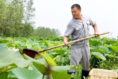 3日,嘉魚縣陸溪鎮(zhèn)界石村鴨兒湖養(yǎng)殖專業(yè)合作社,負責人龔木前在野藕基地進行生產(chǎn)自救。