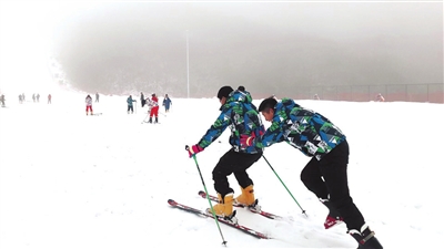 山下春光明媚,山上白雪皚皚,滑行于九宮山滑雪場(chǎng)內(nèi),眼前是白茫茫的雪景,耳邊傳來的是陣陣歡笑,在雪場(chǎng)上盡情揮灑汗水,感受著風(fēng)的速度,展示著體育競(jìng)技帶來的激情與魅力。14日,咸安區(qū)雙溪橋鎮(zhèn)居民周惠文與閨蜜兩人相約來到九宮山滑雪。游玩了一番后兩人都感嘆,“春節(jié)在九宮山呆了三天,滑雪場(chǎng)玩了一整天,感受這里的慢節(jié)奏和與世隔絕的快樂生活,這次出游特別值?!?/p>