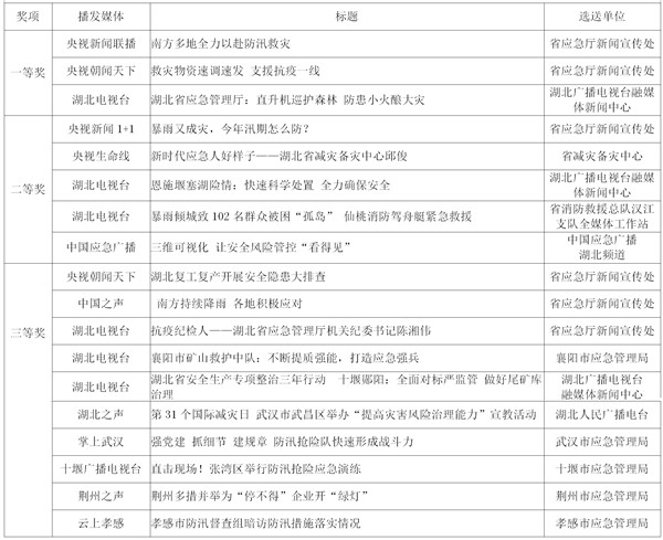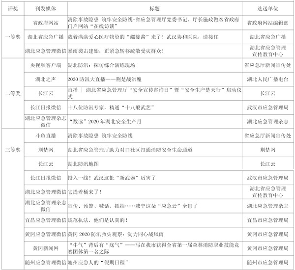 2020年,湖北應(yīng)急人牢記初心使命、踐行訓(xùn)詞精神,圍繞安全生產(chǎn)、防災(zāi)減災(zāi)救災(zāi)、應(yīng)急救援三大主責(zé)主業(yè),經(jīng)歷戰(zhàn)疫、戰(zhàn)洪、戰(zhàn)貧三場(chǎng)大考,打贏防范化解重大安全風(fēng)險(xiǎn)攻堅(jiān)戰(zhàn),向全國(guó)、全省人民展現(xiàn)了不懼艱險(xiǎn)、逆向而行的應(yīng)急鐵軍風(fēng)采,諸多工作成果受到媒體廣泛關(guān)注。來自各級(jí)各媒體記者、應(yīng)急管理戰(zhàn)線的通訊員,精心撰寫、拍攝、制作了一大批形式豐富、內(nèi)容精彩精品力作,深入宣傳我省應(yīng)急管理改革發(fā)展成效。經(jīng)評(píng)審委員會(huì)評(píng)審,69部(篇)“好新聞作品”從報(bào)送的上千條作品中脫穎而出,分獲文字、廣播電視、攝影、新媒體四大類一、二、三等獎(jiǎng),現(xiàn)將獲獎(jiǎng)作品予以發(fā)布。