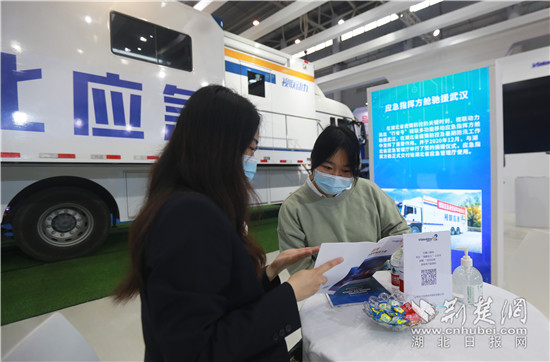 工作人員向現(xiàn)場(chǎng)觀眾介紹公司產(chǎn)品及服務(wù)