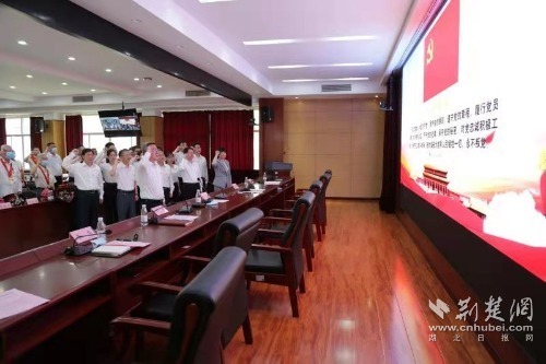 表彰結束后,會議室內響起鏗鏘誓言。新黨員代表集體宣誓、老黨員重溫入黨誓詞。