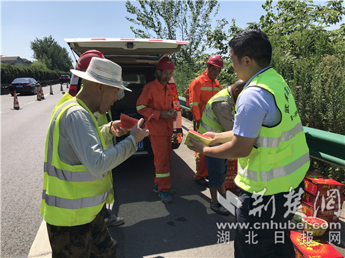 據(jù)悉,為確保高溫天氣的交通安全,武黃運(yùn)營(yíng)公司不僅為司乘帶來(lái)消暑飲品,還及時(shí)對(duì)高速路路面上的坑槽病害進(jìn)行排查、修復(fù)路面交安設(shè)施、維護(hù)道路的清潔,保障高速公路的安全暢通。