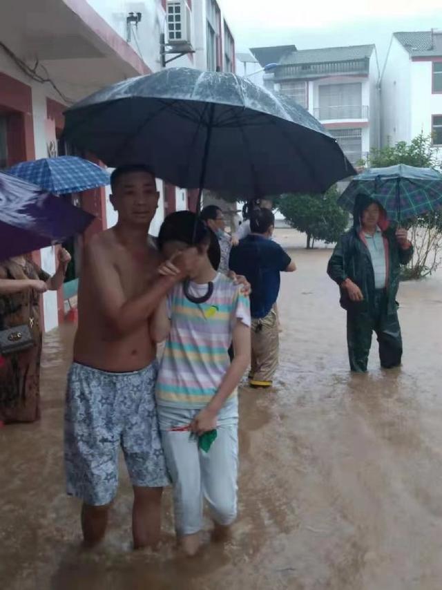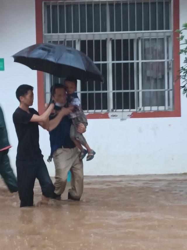 轉(zhuǎn)移小娃娃,一人撐傘、一人抱著。年紀大的、腿腳不便的,直接背著。背不動的,便幾個人一起抬。