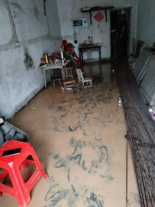 在柳林街道與陳湖咀村主干道交匯處,由于雨量過大,路面積水不斷上漲,湍急的洪水將排洪涵管沖破,整個路面底部出現(xiàn)垮塌,整排房屋隨時有塌陷危險,所幸排查轉(zhuǎn)移及時到位,未發(fā)生人員傷亡。