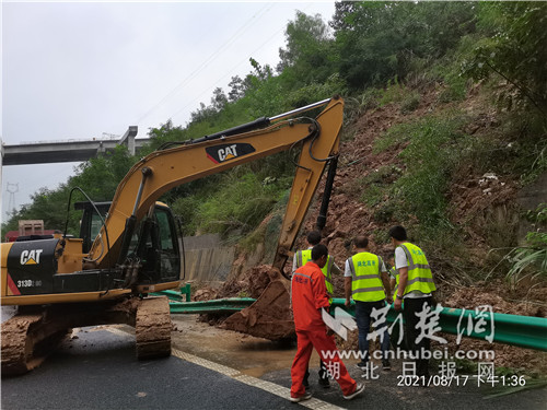 險情發(fā)生后,湖北交投鄂西北高速公路運營管理有限公司第四綜合巡檢辦立即啟動搶險應(yīng)急預(yù)案,經(jīng)過與轄區(qū)高警、路政協(xié)商確定后,將原本因跨線橋施工封閉的行車道改為封閉超車道,確保快速清理路面沙石和淤泥。該公司第四綜合巡檢辦迅速抽調(diào)10名人員組成搶險突擊隊,攜帶2臺挖掘機、2臺運輸車和相關(guān)搶險設(shè)備,緊急上路擺放安全警示標志和勘察險情、確定搶險方案等工作。經(jīng)過全員的共同努力,共清除塌方270立方米,道路及時恢復(fù)了正常通行。