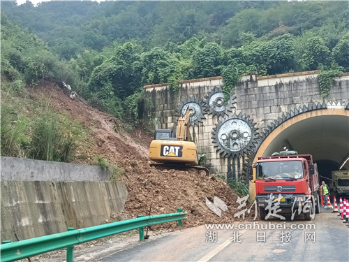 荊楚網(wǎng)(湖北日報網(wǎng))訊(通訊員:金偉忠、宮正、張杰)8月16日至17日,強降雨天氣一直籠罩在湖北十堰市主城區(qū)以及鄖陽、經(jīng)開區(qū)等局部區(qū)域上空,導(dǎo)致G59呼北高速公路鄖十路段出現(xiàn)不同程度的邊坡垮塌、路面沖毀險情。其中,損毀較為嚴重的為方家洼隧道出口處山體滑坡,大量泥沙、土石被沖刷至路沿排水溝及應(yīng)急車道,洶涌水流傾斜而下,誘發(fā)了高邊坡坡頂多處泥土松動、坡面土石不穩(wěn)定,隨時有滑落到車道的可能,嚴重威脅道路行車安全。