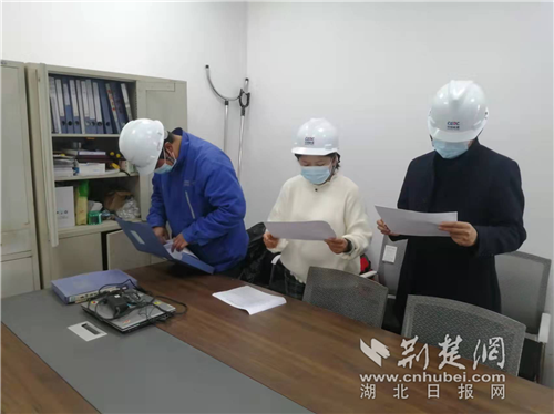 咸寧市交通運輸局、港航局人員檢查葛洲壩嘉魚水泥碼頭安全工作臺賬