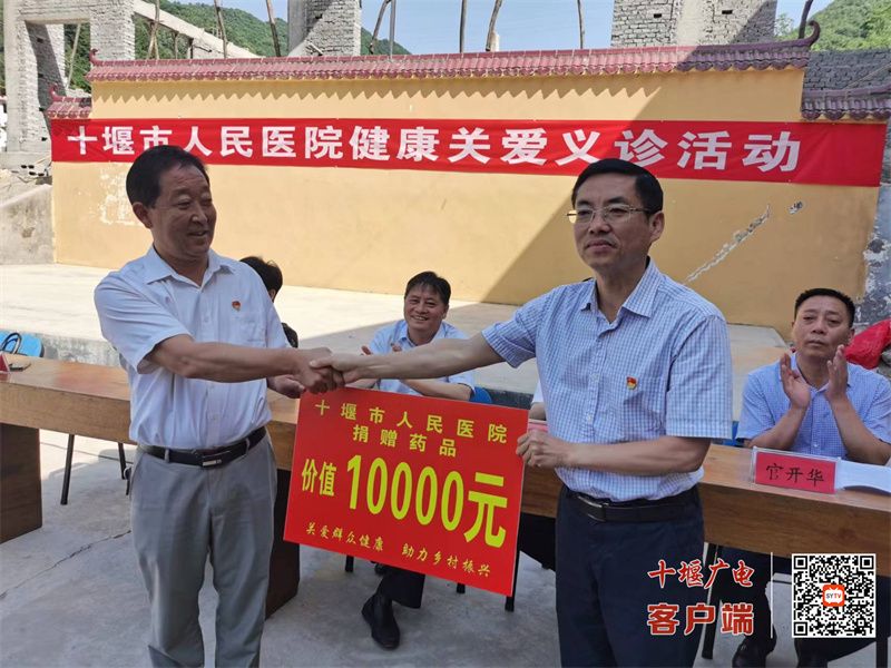 為提高當地健康水平,解決群眾實際困難,醫(yī)院總會計師譚向東代表十堰人醫(yī)現場捐贈了價值10000元的常用藥品。