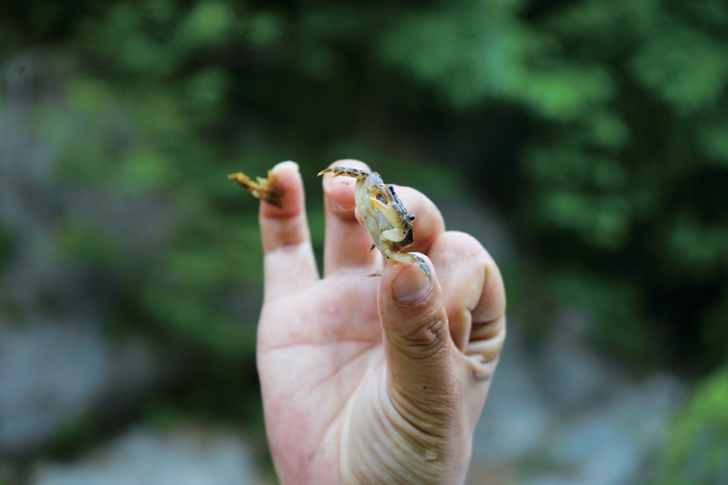 清澈的河中藏有不知名的野魚、小蝦小蟹,野趣天成。