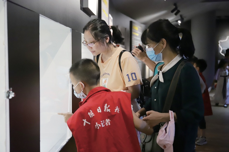 儀式結(jié)束后,家長和孩子們受邀參觀科普作品展作品和博物館、遺址館?!斑@真是一個恐龍大世界,通過參觀我學(xué)到了很多知識,看到了恐龍蛋化石遺址,了解到恐龍蛋有圓形、卵圓形、橢圓形、長橢圓形等多種形狀?!毙∮浾呃仔狸栒f。