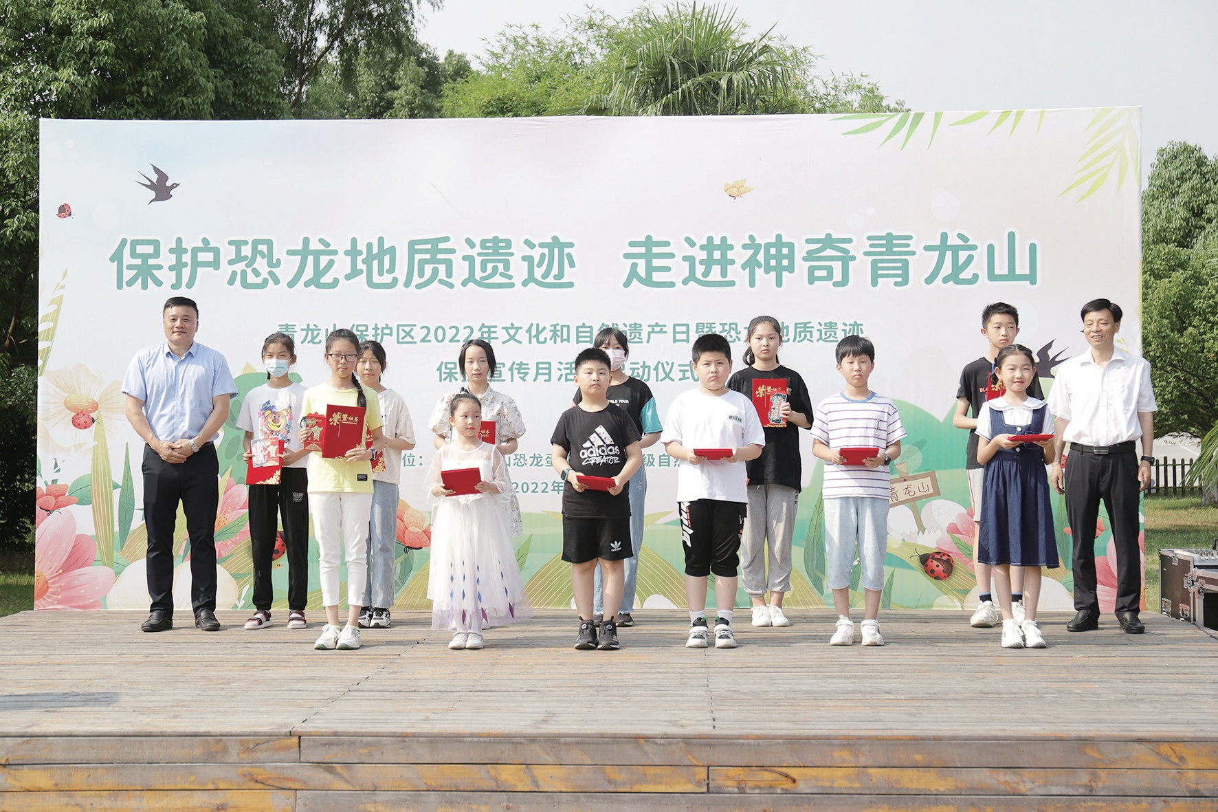 本報訊 6月11日是我國第6個文化和自然遺產(chǎn)日。為了更好保護(hù)青龍山恐龍蛋化石群這一世屬罕見的自然遺產(chǎn),喚醒大家珍愛地球、保護(hù)環(huán)境的意識,當(dāng)日,湖北青龍山管理局在青龍山地質(zhì)公園舉行了2022年文化和自然遺產(chǎn)日暨恐龍地質(zhì)遺跡保護(hù)宣傳月活動啟動儀式。來自十堰日報社小記者團(tuán)、媽媽幫社群的200余位學(xué)生、家長朋友在現(xiàn)場參加活動。