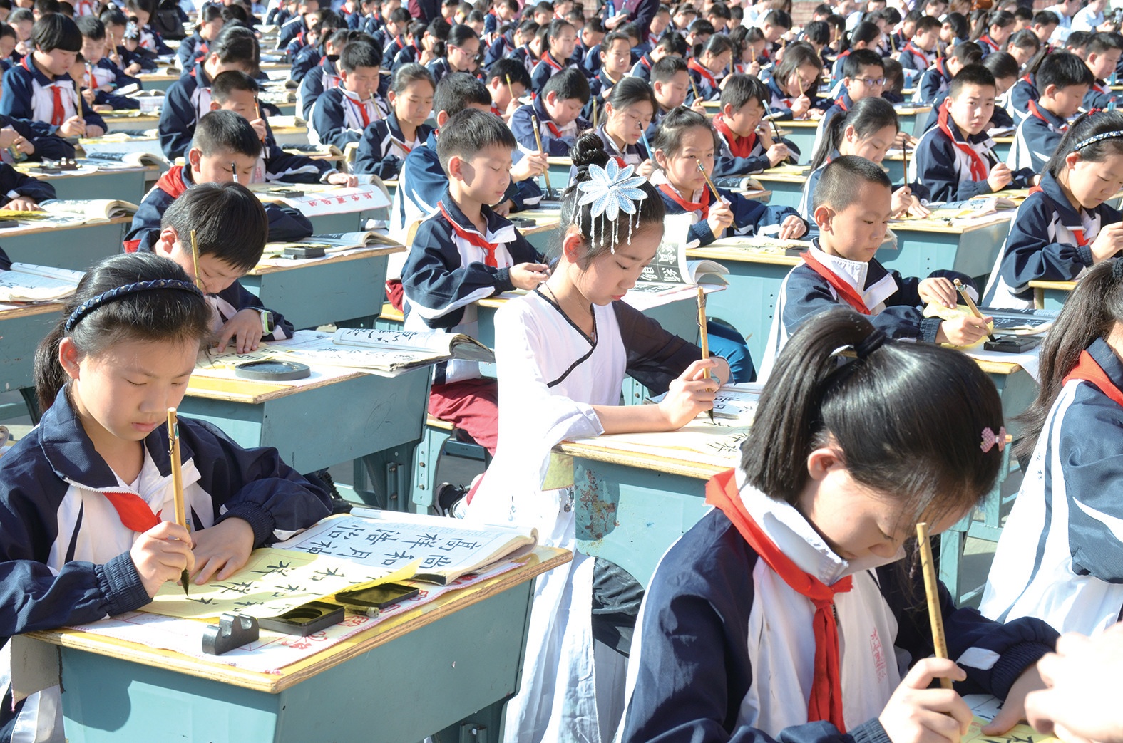 書寫是一個(gè)循序漸進(jìn)的過程,在孩子小學(xué)階段有意識(shí)地培養(yǎng),讓孩子養(yǎng)成良好的書寫習(xí)慣,其將會(huì)受益一生?!拔覀儗W(xué)校每天堅(jiān)持中午練20分鐘書法,孩子們學(xué)習(xí)書法的第一個(gè)內(nèi)容,就是坐姿訓(xùn)練。”東風(fēng)52小學(xué)校長(zhǎng)龔明說。