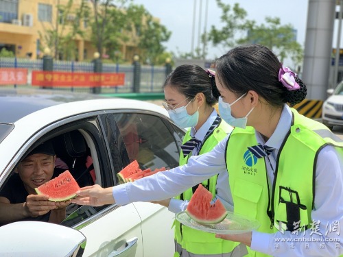 荊楚網(wǎng)(湖北日報網(wǎng))訊( 通訊員 楊晨、常文召)“您好,師傅,吃塊西瓜涼快下吧!”“您好,先生,喝碗綠豆湯解解暑吧!”