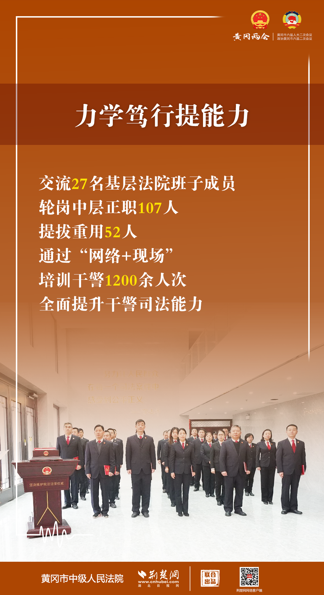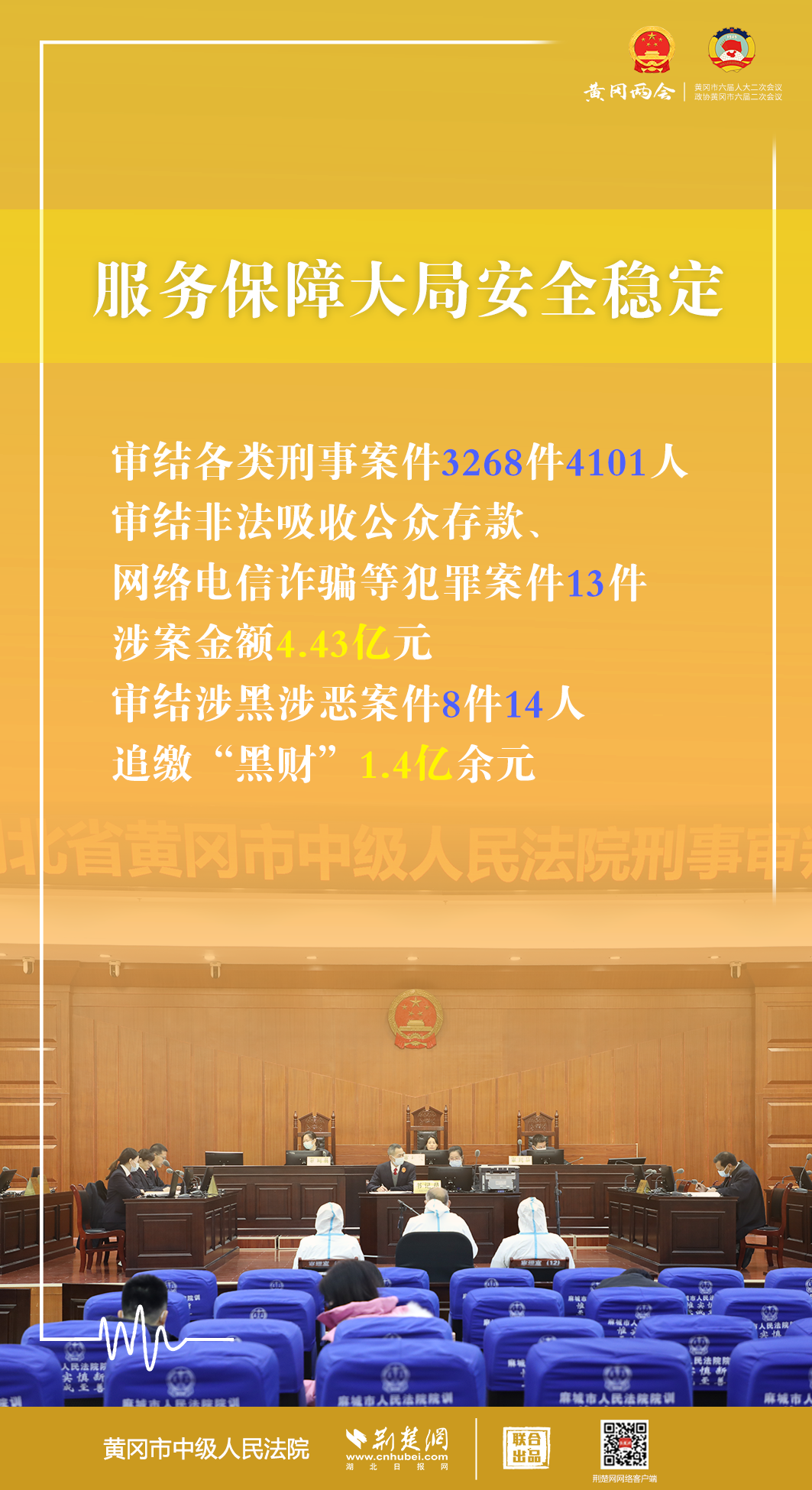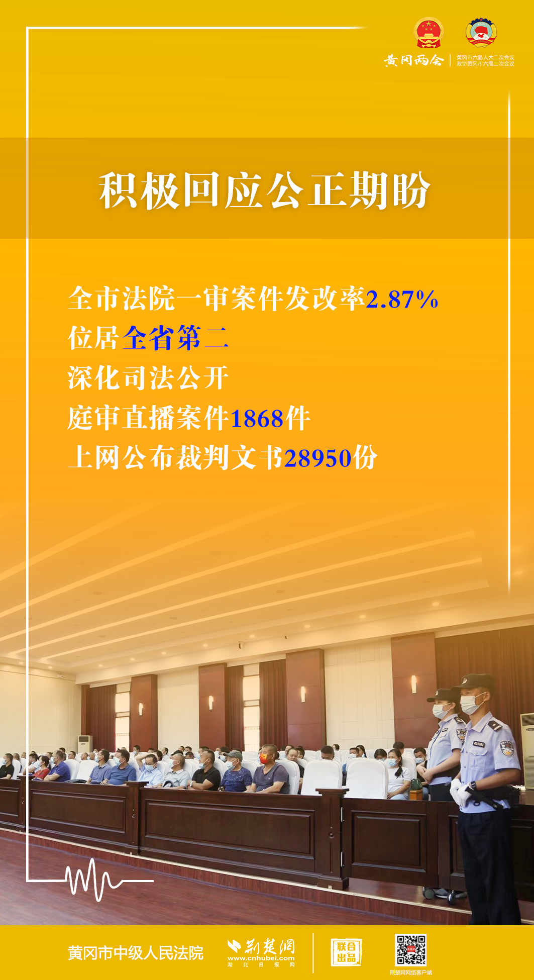1月5日,黃岡市第六屆人民代表大會(huì)第二次會(huì)議開幕,黃岡市中級(jí)人民法院黨組書記、代院長文利紅向大會(huì)作報(bào)告。