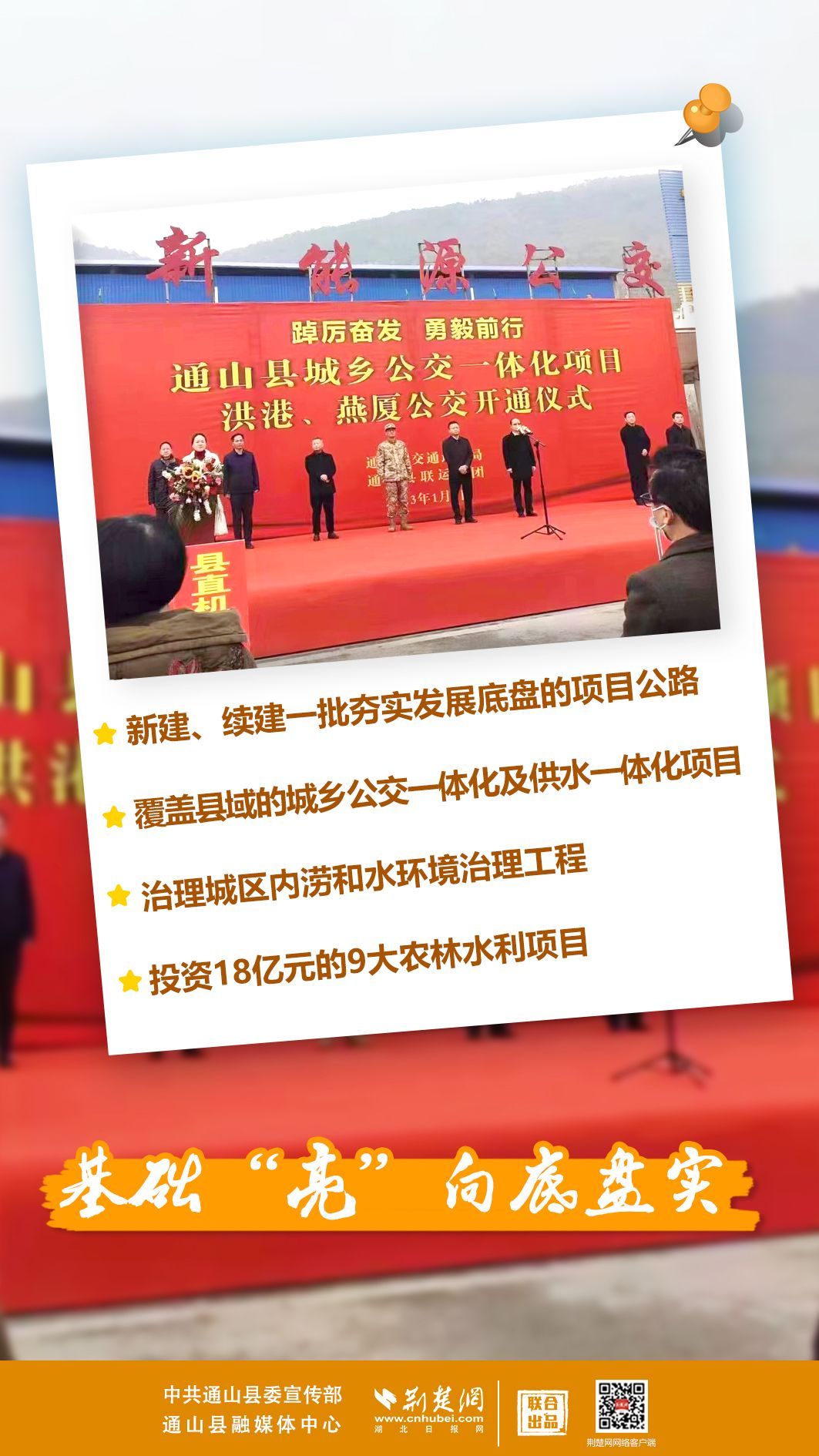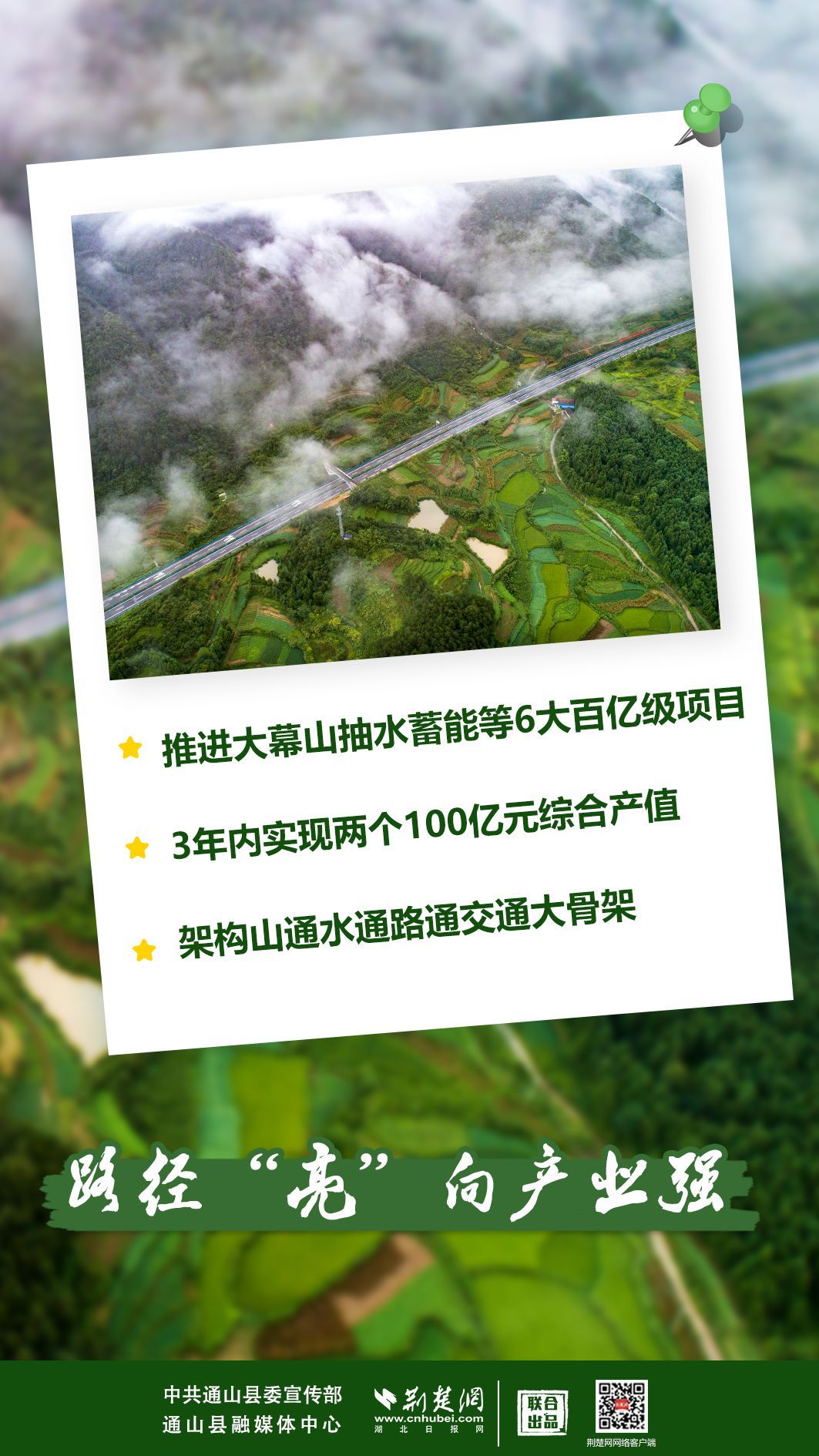 1月30日,通山縣項目建設比拼年、環(huán)境作風優(yōu)化年、流域治理促進年動員大會透露,該縣找準通山在咸寧打造武漢都市圈自然生態(tài)公園城市中的發(fā)展定位和個性化功能,推動經濟社會綠色低碳發(fā)展,建設現代化秀美新通山,確定在縣域2680平方公里全域實施“加快打造國家新型能源之都、國家全域旅游強縣”發(fā)展方略。
