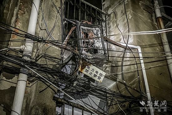 “在上面!在上面!趕緊救火??!”消防救援人員到場后,現(xiàn)場圍觀群眾不斷呼喊。經(jīng)救援人員偵察發(fā)現(xiàn),現(xiàn)場為一棟6層樓磚混結(jié)構(gòu)老舊民房,起火點位于三樓樓梯間電表箱處,此時樓梯間內(nèi)火光閃動,不時伴隨著宛如炸鞭“噼里啪啦”的爆炸聲,由于電線盤根錯節(jié),導(dǎo)致火勢蔓延很快,樓道內(nèi)濃煙彌漫。