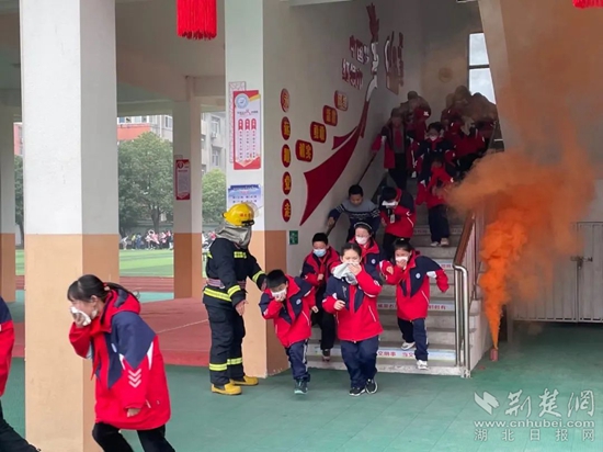濃煙彌漫,警報響起,“險情”發(fā)生......學校立即啟動消防應急疏散預案,全體學生在老師的帶領下,按照既定的疏散路線,彎腰低頭,捂住口鼻,迅速有序地撤離到操場安全區(qū)域。