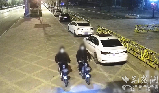 鳳凰派出所隨即聯(lián)合市局刑偵支隊依托“情指勤輿”一體化實戰(zhàn)化運行機制,根據(jù)基站自動報警時段,重點對其附近路段的公共視頻資料進行研判,果然發(fā)現(xiàn)了疑點:由于報警時間段為凌晨,周邊道路幾乎沒有人,所以兩名騎著共享自行車的戴口罩男子引起了民警的注意。