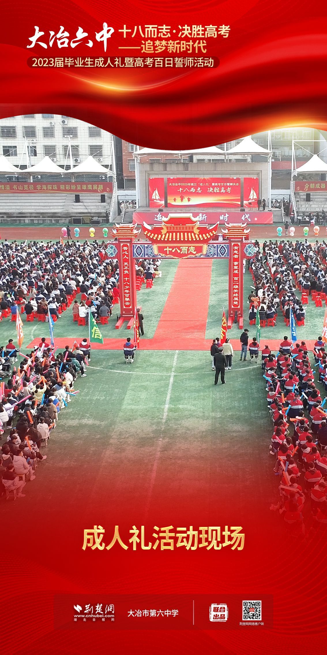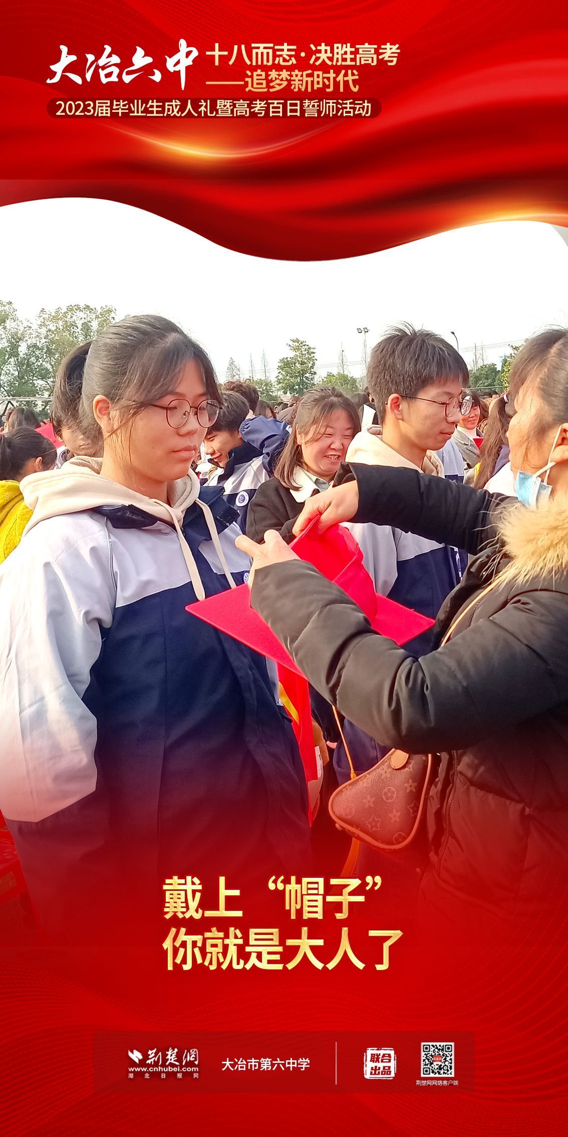 荊楚網(wǎng)(湖北日?qǐng)?bào)網(wǎng))訊(記者 左乙辰 通訊員 吳江濤、任慧)撥穗正冠,禮成!2月25日,大冶市第六中學(xué)3600名學(xué)子和家長、老師共同見證該校1200名高三同學(xué)十八歲成人儀式,共赴六月的理想征程。