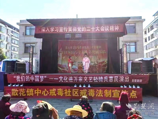 當(dāng)天,浠水縣楚劇團(tuán)到該村開展送戲下鄉(xiāng)活動(dòng),現(xiàn)場群眾絡(luò)繹不絕,浠水縣公安局禁毒大隊(duì)聯(lián)合散花鎮(zhèn)中心戒毒社區(qū)借活動(dòng)演出時(shí)機(jī),在現(xiàn)場開展毒品預(yù)防宣傳教育活動(dòng),共發(fā)放宣傳資料200余份,解答相關(guān)咨詢30余人。
